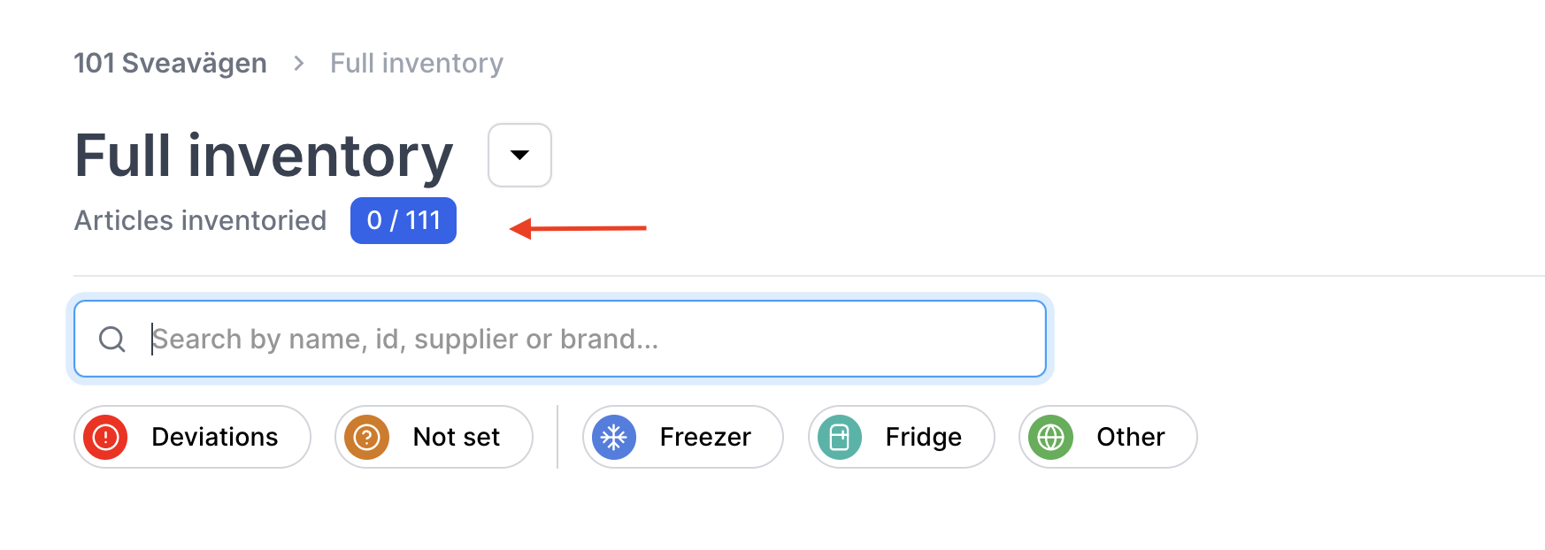 Before starting the inventory, you will get the question “have you received today’s delivery”. Select whether or not you have received your delivery (so we know if you are including the delivery in your inventory count.)