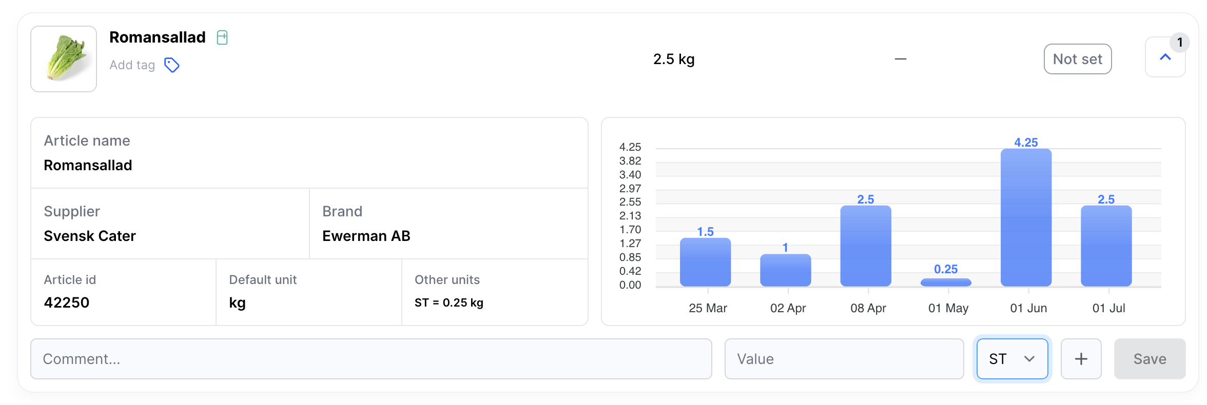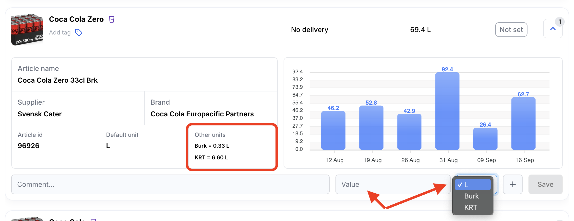 - Other units: a supplier article will often have multiple available units to use when performing the stock take.
