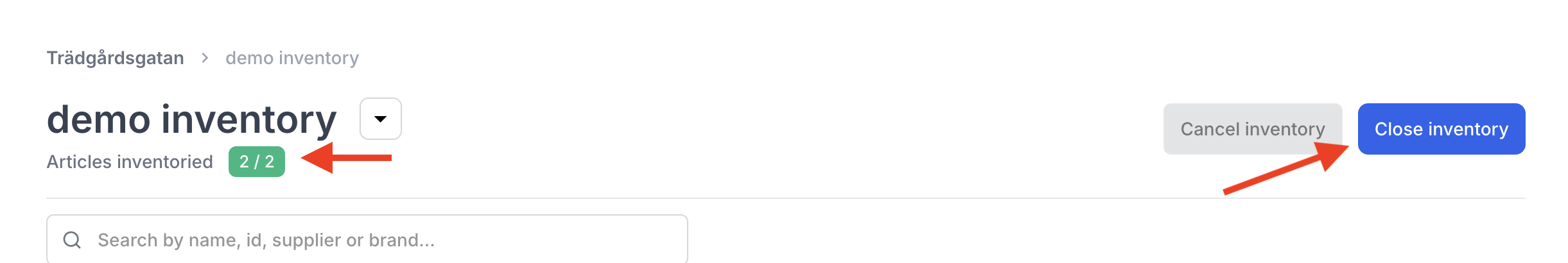 All items in the inventory list have an inventoried value before the inventory can be closed. That means, even if the list contains items you don’t have in stock, you need to enter the value of 0.