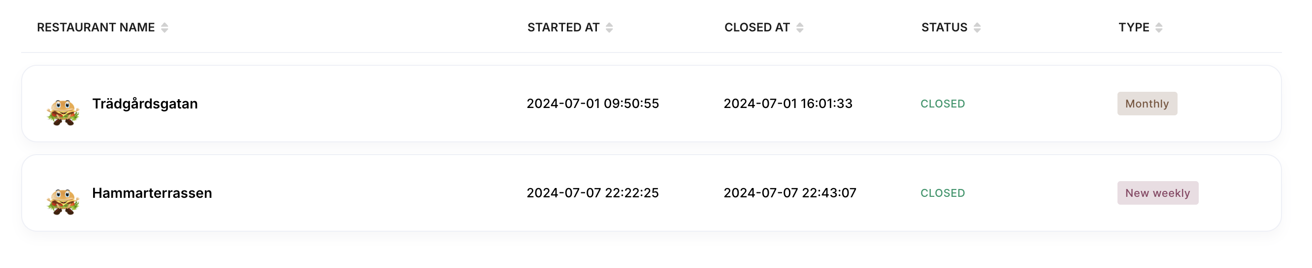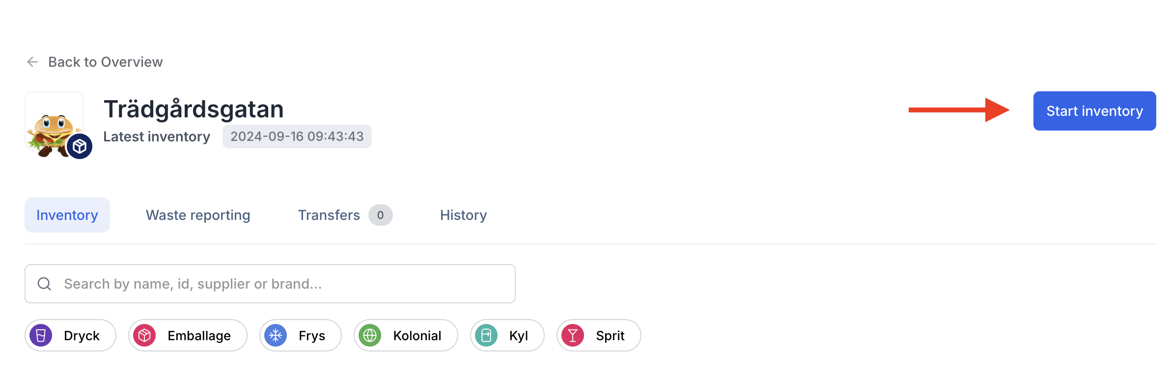 When you enter the inventory, you are displayed with all the restaurants connected to your account. If you only manage one restaurant, you are directed to your restaurants inventory.In the first overview, you are displayed with: