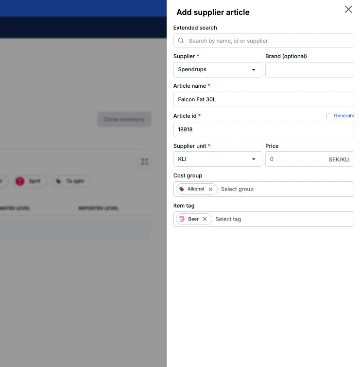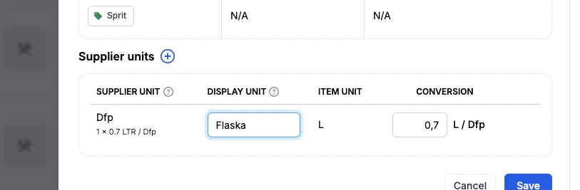 Superadmins kan nu redigera visningsnamn för enheter på leverantörsartiklar, samt lägga till nya enheter, vilket gör det enklare för personal att göra inventeringar. Detta hanteras via Recipes & Items > Supplier articles.