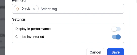 Superadmins kan nu välja att aktivera eller inaktivera artiklar i Performance och inventory från items.